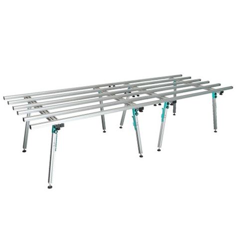 A lightweight, robust and stable workbench for large-format tiles, enabling cutting / drilling without risk of damaging the work surface. Easily assembled for transport and storage and can be connected together with additional tables for increased work surface, features include foldable legs and adjustable rails. Height: 800mm, Width: 1400mm, Length: 1800mm, Max. Load: 200kg