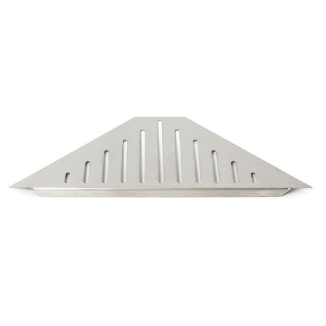 Stylish Shower Shelf in Stainless Steel. Fits in 90 degree corners. The shelf attaches in the grout joint with silicone - no drilling required! The Shower shelf can be tiled in during installation or fitted retrospectively.