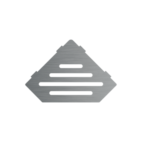 Stylish Shower Shelf in Stainless Steel. Symmetrical corner installation. Grade 304 finish. The shelf attaches in the grout joint with silicone - no drilling required! The Shower shelf can be tiled in during installation or fitted retrospectively.