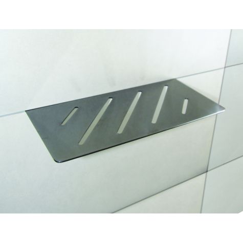 Stylish Shower Shelf in Stainless Steel. With straight lines and elegant design, the shower shelf range is expanding due to popularity with this straight shelf now available in 10 finish options, giving flexibility on positioning and design of your shower installation. Easy installation - the shelf is fitted in the grout joint whilst tiling and sealed with silicone - no drilling required!