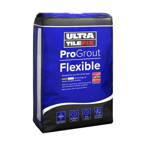 Instarmac ProGrout Flexible Tile Grout is ideal for areas that move & flex, such as grouting tiles laid on timber floors. Instarmac ProGrout Flexible Tile Grout is suitable for all tile types, and is ideal for wetrooms, swimming pools and underfloor heating. Instarmac ProGrout Flexible Tile Grout is available in 14 colours! Polymer has been added to the formulation to increase flexibility and to provide a virtually impermeable set. UltraTile ProGrout Flexible is suitable for joint widths up to 20mm. ProGrout Flexible is packaged using the latest plastic packaging technology, offering you greater product protection and prolonged freshness.