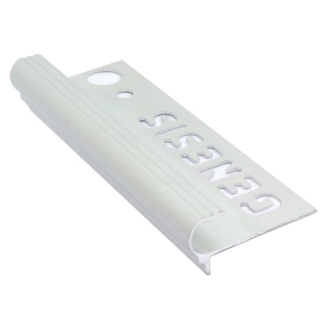 Genesis NAT is an attractive slender profile designed to enhance the step installation and protect the edge of the floor covering from impact damage. It also provides a little grip on the edge of the step to prevent slipping. The flange sits underneath flat tile and also forms a locking locator for the riser tile. The neat rounded face highlights the edge of the step as well as protecting it. Genesis aluminium trims can be supplied in a bespoke powder coated finish to any RAL number, a quotation can be supplied upon request. Supplied in 2.6m lengths with 2 depth options.