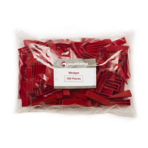 Mustang Levelling Systems are a simple and quick solution to achieving level tiled floors with no lippage. Mustang wedges are designed to accommodate medium to large format tiles. Made from solid durable red PVC, they can be re-used over and over again. The uniquely formed ridges that run along the top side of the wedge are designed to allow for height adjustment when using the handy Mustang levelling tool. Once the correct amount of pressure has been applied to the wedge, the base clip will be firmly locked in place and ensures that the adjacent tiles will have no visible edges or lippage. The universal wedges are suitable for all Mustang & Mustang +PLUS 1mm, 2mm and 3mm bases.